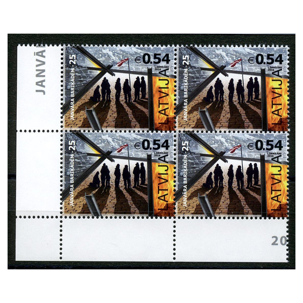 Latvia 2016 January Barricades, u/m. SG964 x 4 corner blocks