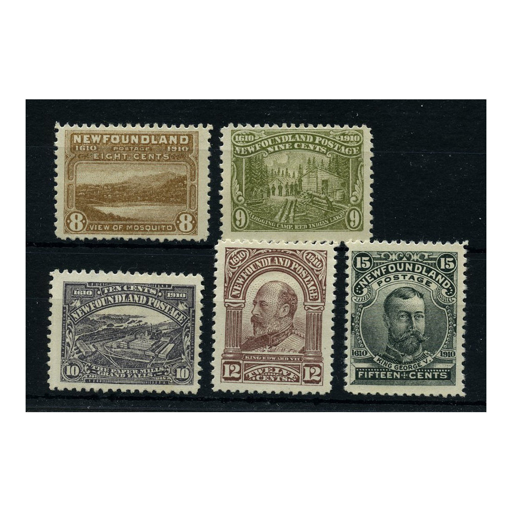 NFLND 1910 8c to 15c Colonization top values, fresh mtd mint. SG101-05